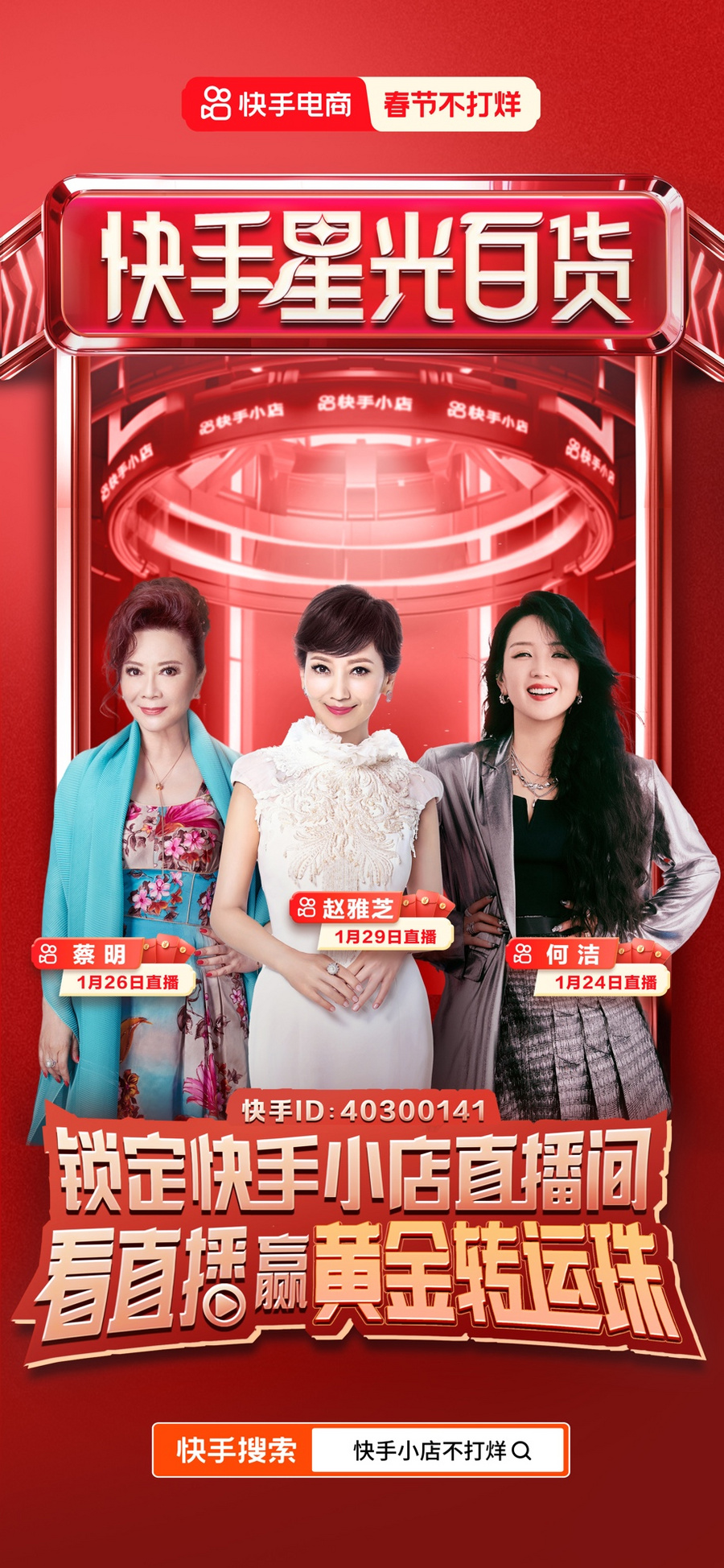 赵雅芝、蔡明、何洁都来了!快手电商春节开启“快手星光百货”明星直播